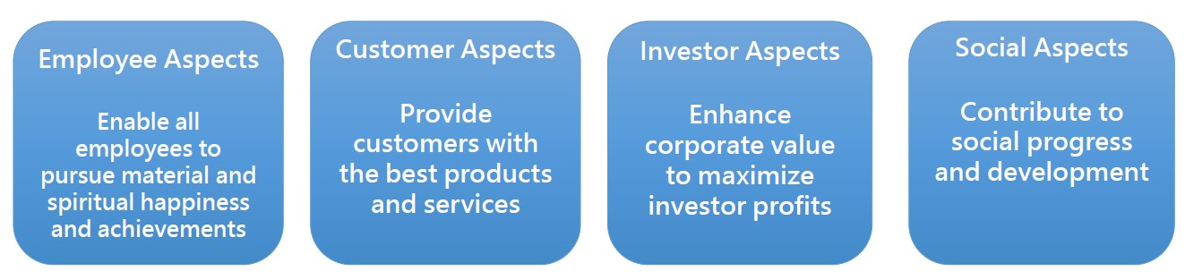 We comply with law, refine corporate governance, and emphasize employee interests as well as physical and mental care.